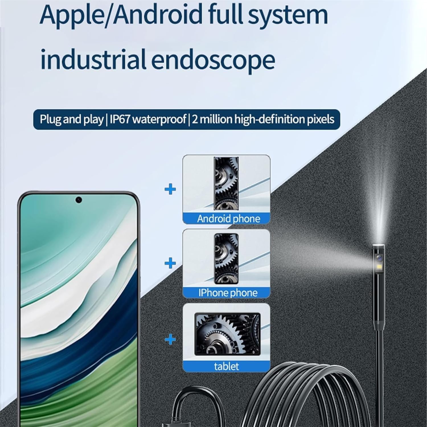 See More, Clearer – 2.0MP HD Camera with Live View: Inspect with clarity using a 2MP HD lens delivering 25FPS smooth video and a sharp 2–10cm focus range. Whether you're checking behind walls, deep inside drains, or under the hood, you'll see the details that matter—live on your screen.