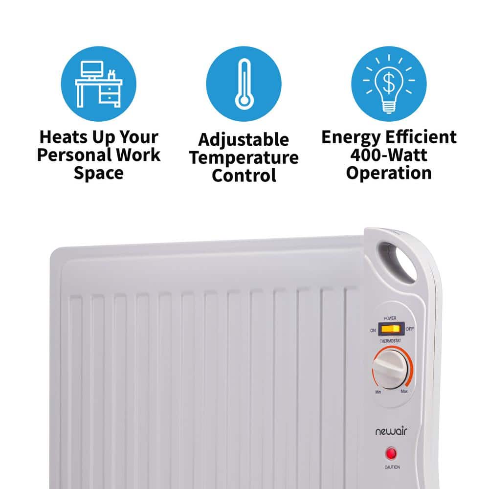 NewAir Portable 400-Watt Electric Oil-Filled Silent Slim Fit Design Under Desk Heater with Energy Efficient Operation - White