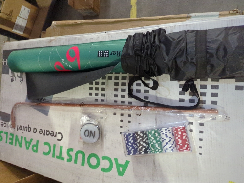 [Premium All-in-One Craps Game Set]: Elevate your gaming nights with our complete craps game set—everything you need is neatly packed in one box, you’ll get a spacious 35”×70” tabletop layout, 48x11”rubber diamond pyramid bumper, a 36” rattan stick, 19mm (0.75”) professional dice, 100 pcs chips, and ON/OFF buttons.