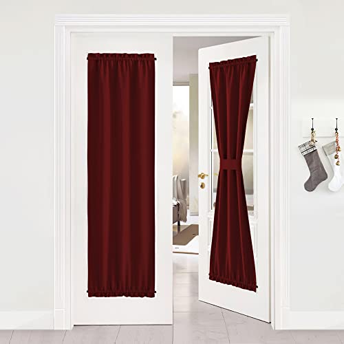 NICETOWN Patio Door Window Drape - Functional Privacy Thermal Insulated Blackout French Front Sidelight Panel Curtain for Glass Door (25W by 72L Inches, Burgundy, 1 Panel)