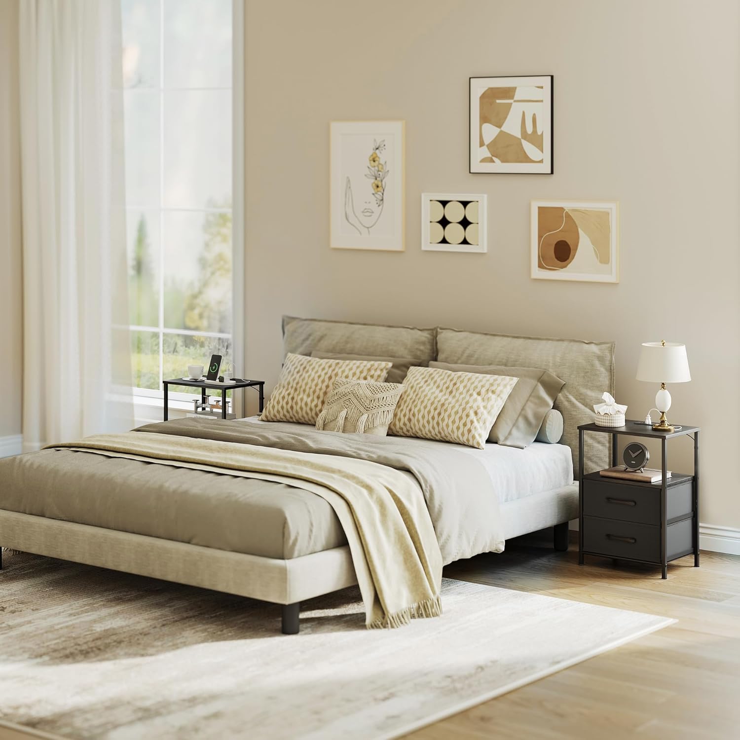 【Versatile Storage Options】This night stands set of 2 offers tons of storage for you, from 2 open shelves to closed 2 fabric drawers. You can place your lamp, phone, coffee cup on the top panel, store books, game consoles in the middle shelf, and hold some private items in the drawers.