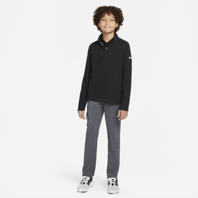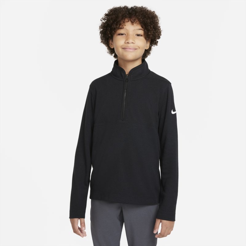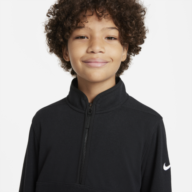 Few things are as comfortable as the Nike Dri-FIT Victory Top. Its lightweight fabric pairs the look of your favorite sweater with the performance-first feel of technical mesh. Plus, the notch in the front of the collar lets you address the ball without fabric—or a zipper—bunching under your chin. Standard fit for a relaxed, easy feel Original Colour by Producer: BlackSelect Size: LColour: BlackGender: MaleSize: LMade in: VietnamMaterial Specification: PolyesterAge Group: Young AdultSeason: WinterMaterial: Polyester.