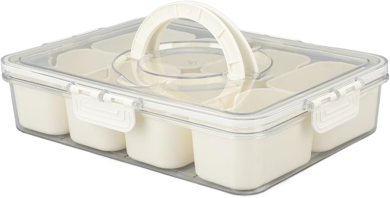 9 Compartments: The divided container has 8 compartments to avoid food mixing and can be placed including snacks, condiments, dried fruits, appetizers, nuts, toppings and anything else you like.: 9 Compartments