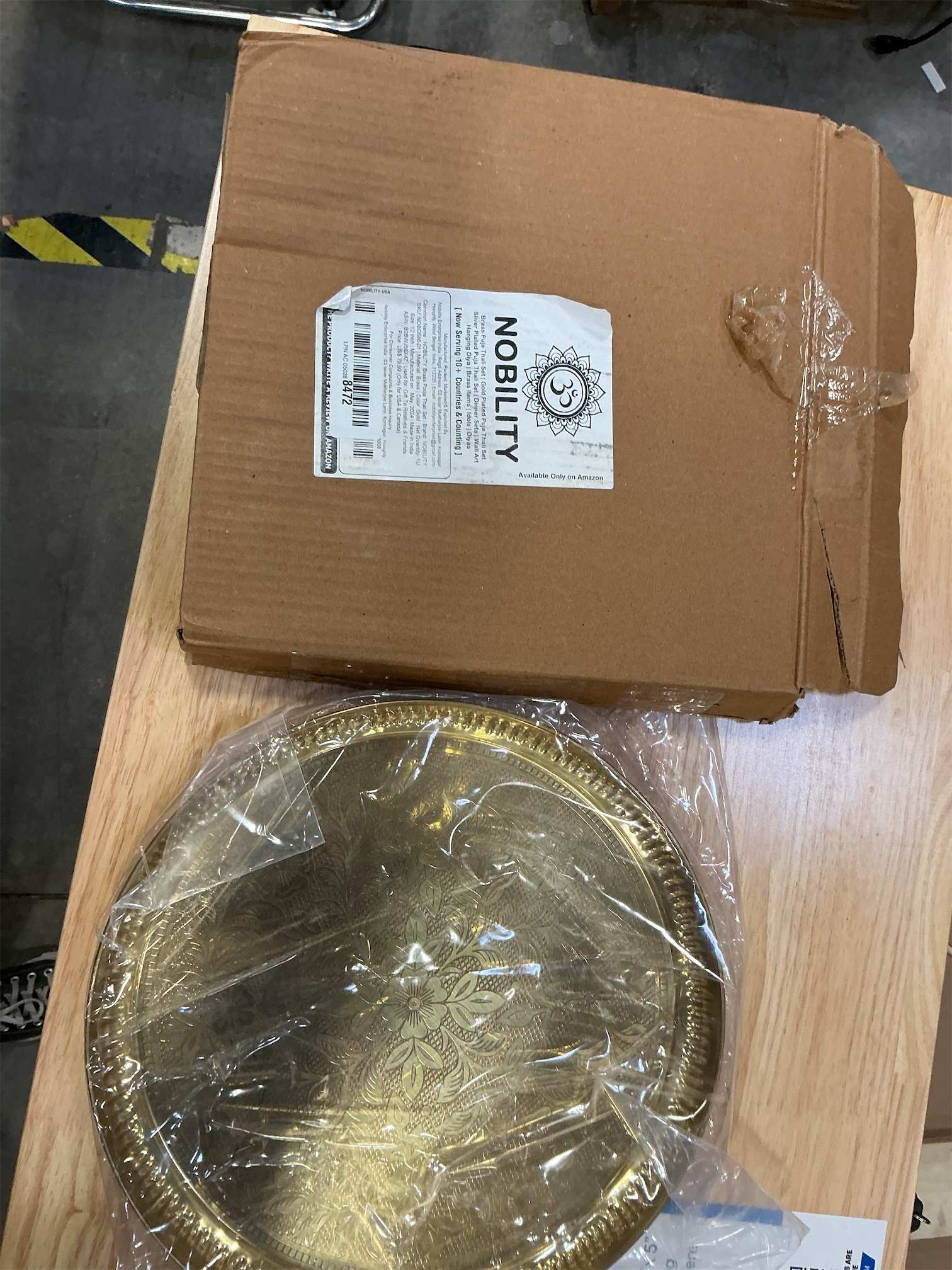 NOBILITY 12 Inch Brass Pooja Plate Pital Puja Set Arti Thali Traditional Handcrafted for Home Office Mandir Wedding Return Gift Items