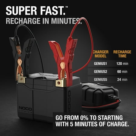 INTRODUCING NOCO LITHIUM — It's better than lead-acid in almost every way. No sulfation. Requires no activation, no acid, no maintenance, and no water needed. And it comes fully charged and ready to install. INSANE PERFORMANCE — Delivers over 250-amps of starting power, over 50,000 starts, and over 2,000 charge cycles, blowing away its lead-acid rivals. Simply put, it's 2X more power, 10X more starts, and 5X longer life. DYNAMIC BMS — An advanced battery management system that provides maximum safety protection with bi-directional active cell balancing for long-lasting reliability. Plus, no BMS reset is needed. SUPERFAST CHARGING — Unleash the power of lithium and quickly recharge within minutes. Utilizing the most advanced rapid-charge technology, it provides enough starting power with just 5-minutes of charge. UNIVERSAL — A multi-terminal configuration that allows front, side, top, and female installations. Plus, modular trays fit various group sizes and a removable mounting block to accommodate legacy battery applications. COMPATIBLE — Works with most powersports brands - Aprilla, BMW, Buell, Ducati, Harley-Davidson, Indian, Triumph, KTM, Argo, Can-Am, Honda, Husqvarna, Kawasaki, Suzuki, Arctic Cat, BRP, Waverunner, Polaris, Vespa - motorcycles, ATVs, UTVs, PWCs, quads, 4 wheelers, jet skis, waverunners, scooters, riding lawn mowers, generators and more. FITMENT — Replaces battery sizes BTZ4L-BS, BTZ5S, BTZ5L-BS, BTZ7S, BTZ7L-BS, BTZ8V, YTX4L-BS, YTZ5S-BS, YTX5L-BS, YTZ7S, YTZ7L-BS, and YTZ8V.