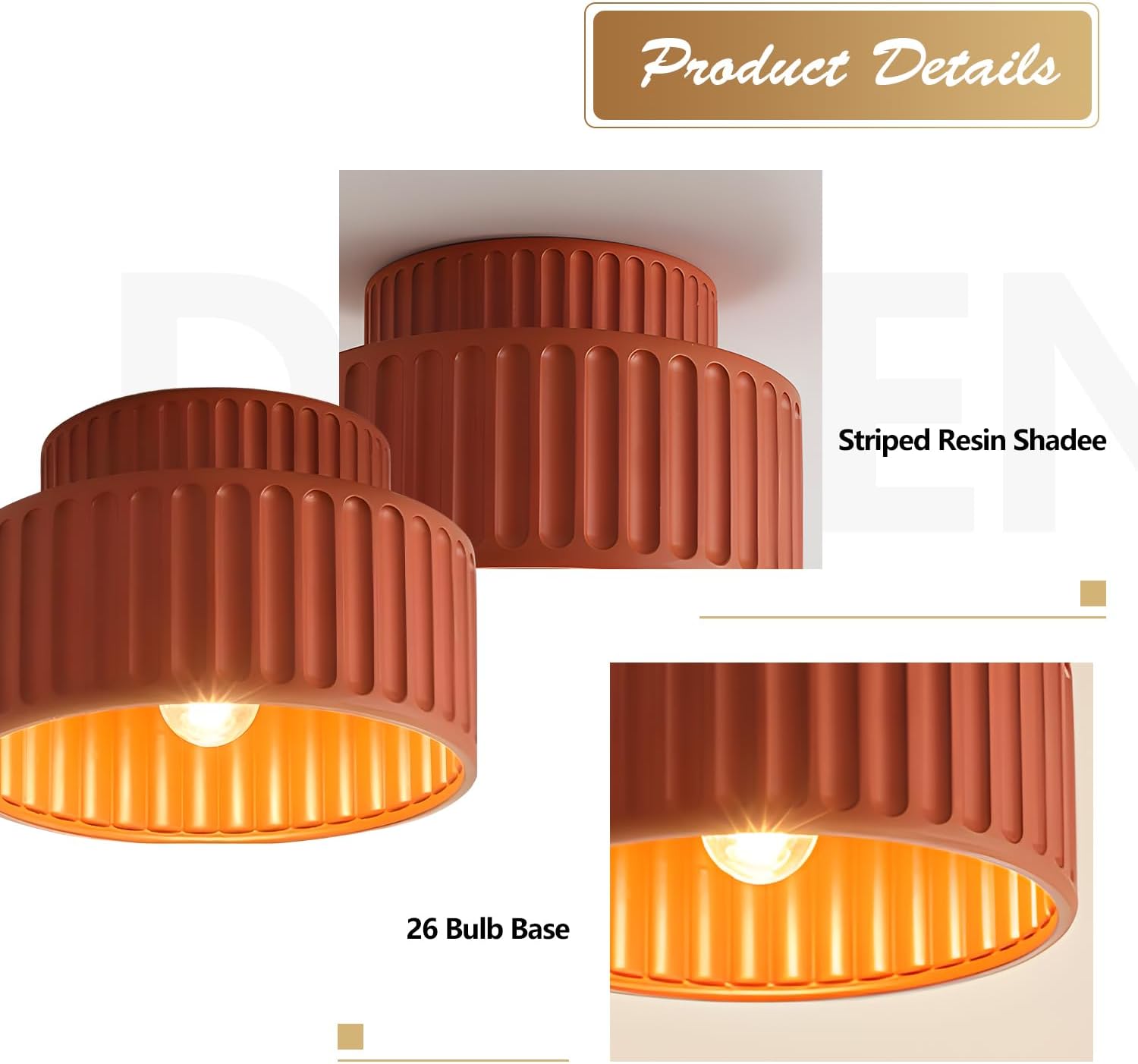 Modern Ceiling Light: The red-orange semi flush mount ceiling light comes quality red-orange resin lampshade,adding a modern touch to your decor.It provides bright, unobstructed illumination,creating an open and inviting atmosphere in your room
