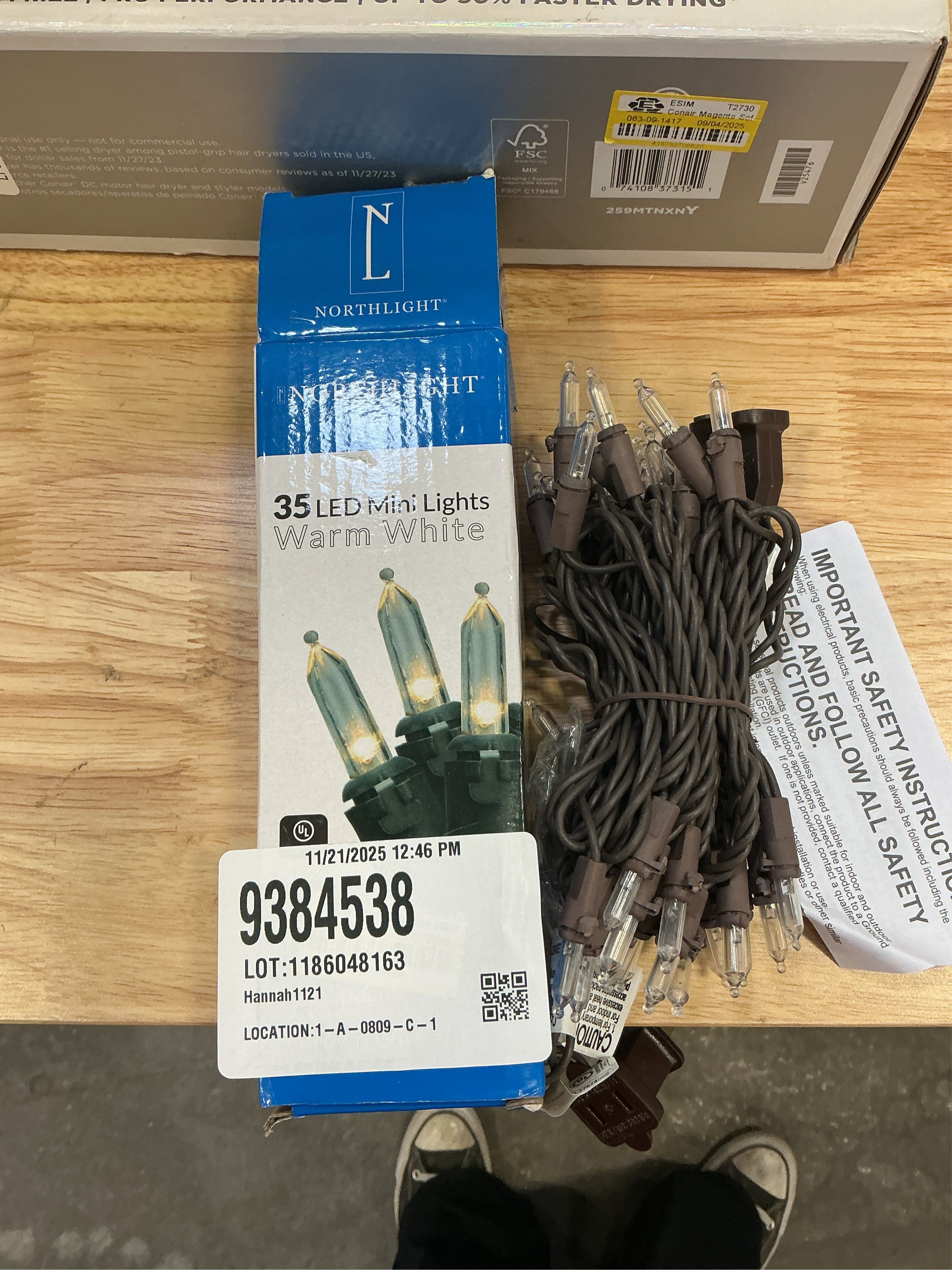 It wouldn't be Christmas without Christmas lights. These lights will brighten your spirit, and your home. Spacing between each bulb - 4". Lighted length - 11.25'. Total length - 12.5'. 12" lead cord. 3" tail cord. Color- warm white bulbs / brown wire. Warm clear also known as "warm white" has a soft natural incandescent glow similar to candlelight. Number of bulbs on string - 35. LED lights use 90% less energy. Durable non-glass replaceable bulbs. Cool to the touch. UL listed for indoor or outdoor use. If one bulb burns out the rest will stay lit. Lights are equipped with Lamp Lock feature which makes them replaceable interchangeable and keeps them from falling out. Comes with replacement bulbs and spare fuses. Contains end-to-end connectors which allows you to connect multiple sets together (not to exceed 210 watts). Wire gauge - 22. 120 volts 60 hertz .02 amps 2.4 watts. Plastic. Spot Clean. Imported