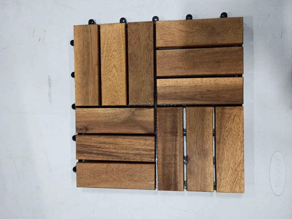 NOVO Solid Acacia Deck Tiles 12 Slats Interlocking Flooring Tiles Checker Pattern (10pcs)