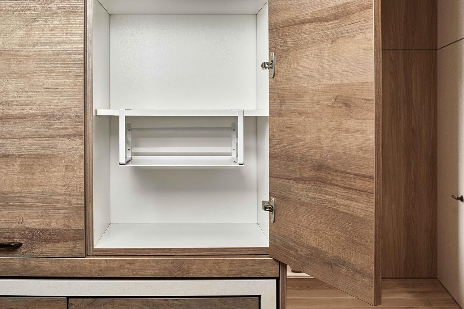 Multi-Functional Organizer: This under storage shelf can be considered as a mobile drawer organizer hanging under cabinets to store cans, spices, mugs, jams, seasonings and more. It also can be in the cabinet as an expanded organizer to organize foods, bottles, snacks, baking supplies and so on. It helps you to organize your space and access clutters easily.