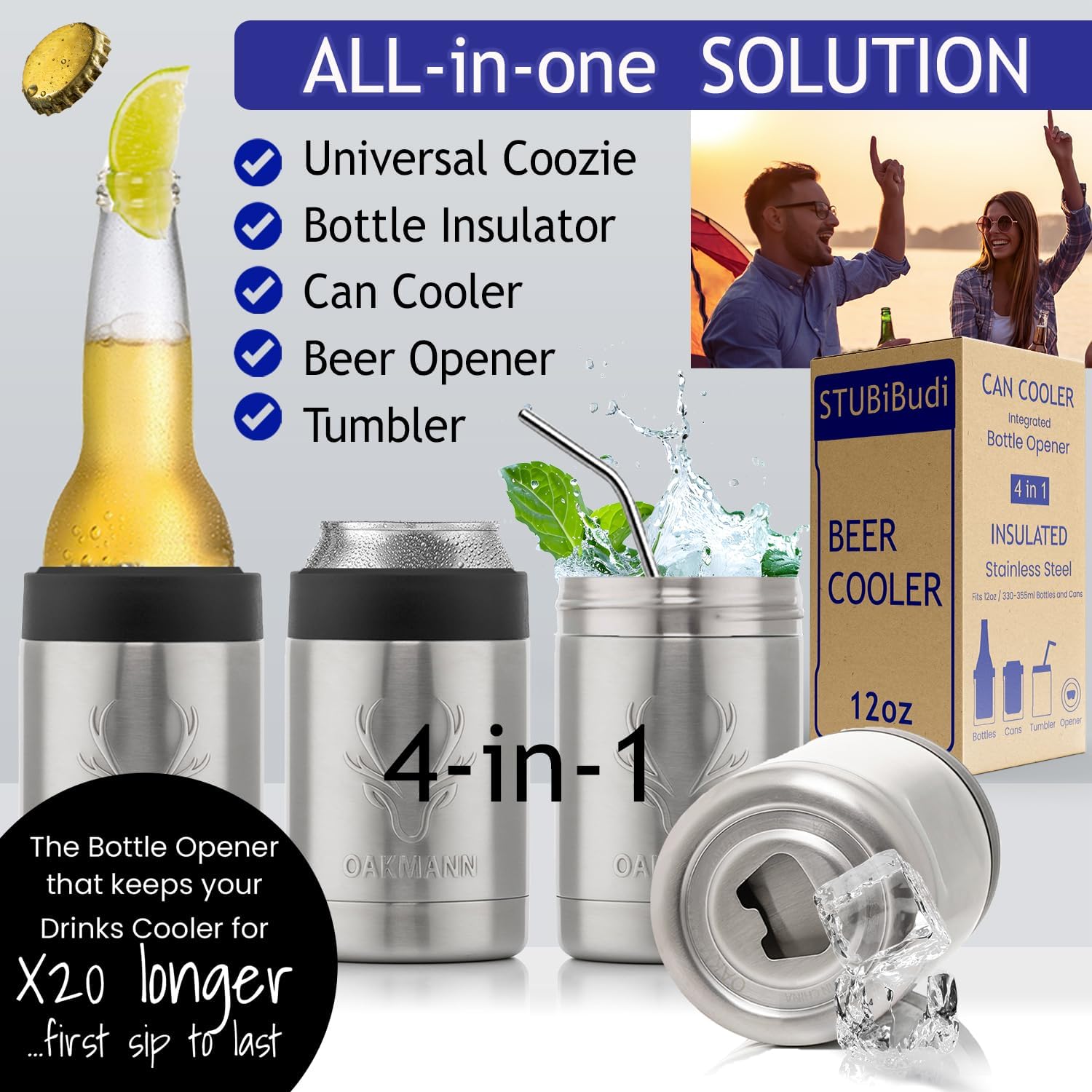 STUBiBudi by OAKMANN Beer Can Holder universal can cooler will be your favorite thermocooler for all drinks with keeper lid removed it becomes a beer mug, camp cup & tumbler too. Termos cerveza fits modelo cans.