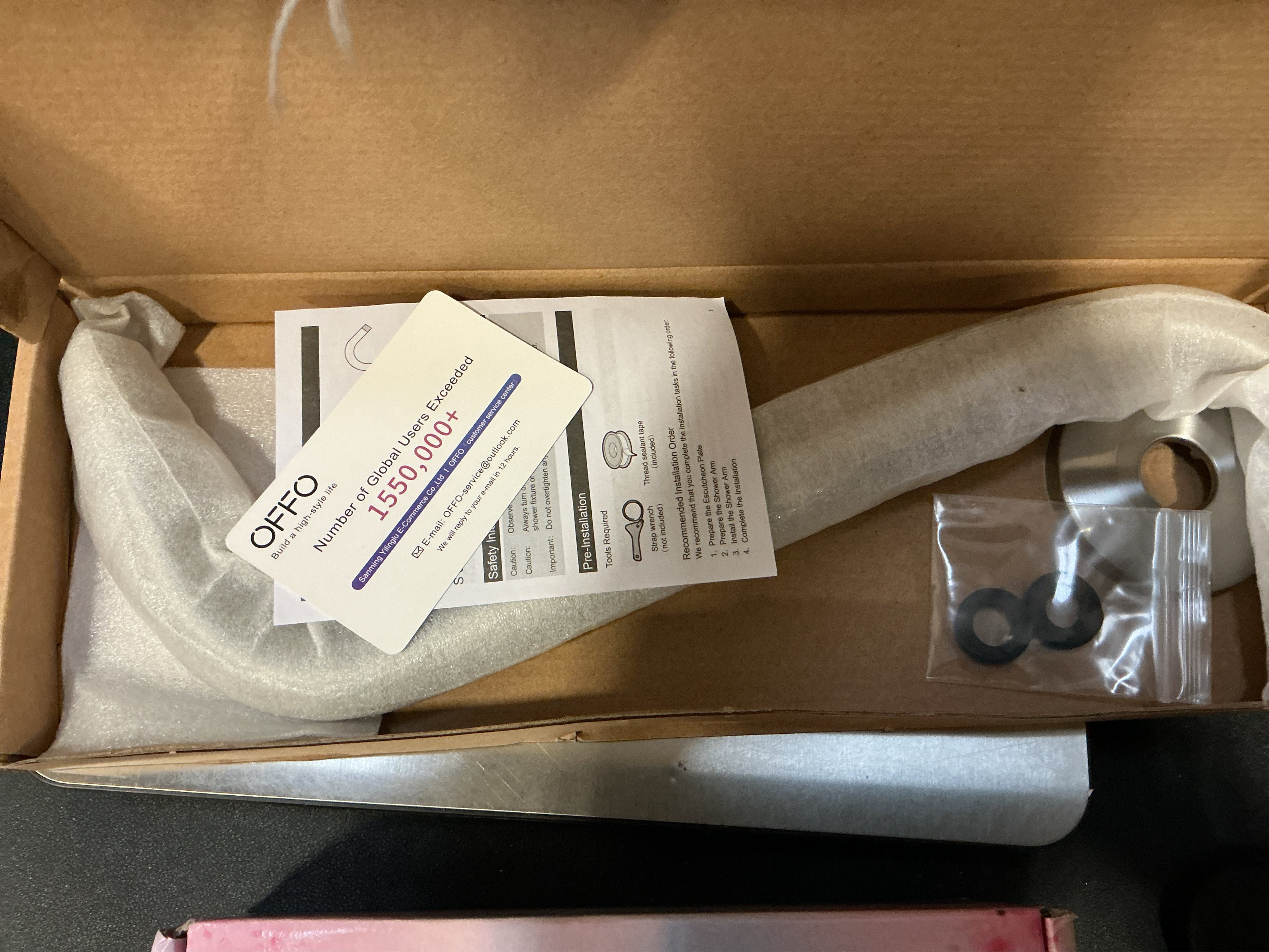 OFFO Shower Head Extension Arm 12 in, Brushed Nickel S Shaped Shower Arm with Flange High Rise Goose Neck Shower Arm Extension