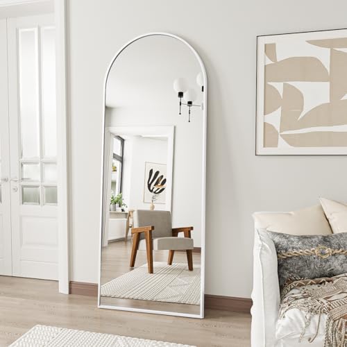 OGCAU Floor Full Length Mirror, 56"x20" Arched Full Body Mirror, Hanging or Leaning, Standing, Wall Mounted with Aluminum Frame for Bedroom Living Room, White