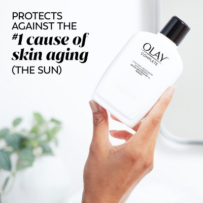 Protect against the #1 cause of aging skin-damage from the sun. Recommended by the Skin Cancer Foundation, Olay Complete Daily Moisturizer with Broad Spectrum Sunscreen SPF 15 and UVA/UVB protection provides 48 hours of hydration for normal skin. This lightweight, antioxidant lotion conditions skin surface with Vitamins E, B3 and C to help maintain healthy-looking skin. Unlike many facial moisturizers with sunscreen, Complete All Day facial moisturizer with SPF is non-greasy and lightweight. Its oil-free formula leaves skin with a healthy glow. With its proven SolaSheer Technology, experience hydration with sun protection from America's #1 UV moisturizer, based on P12M Nielsen xAOC unit sales.