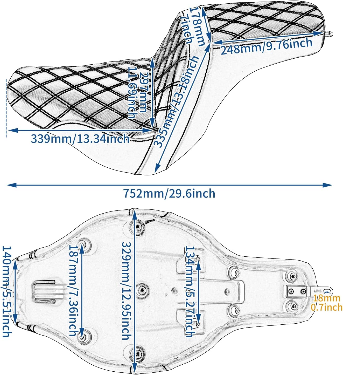 Fitment: Fit for Harley Softail FLSB Sport Glide 2018-2024,FXLR Low Rider 2018-2021,FXLRS Low Rider S 2020-2024,FXLRST Low Rider ST 2022-2024.This One-Piece Driver Passenger Seat offers a seamless upgrade for riders seeking both style and comfort