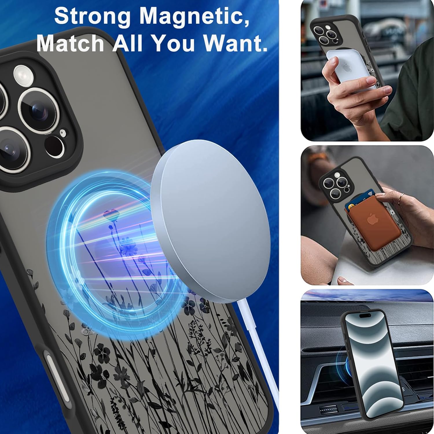 OOK Magnetic for iPhone 16 Pro Max Case [Compatible with MagSafe] Black Wild Flower Slim Translucent Matte for iPhone 16 Pro Max Camera Lens Protection Cover, Wild Flower (6.9")