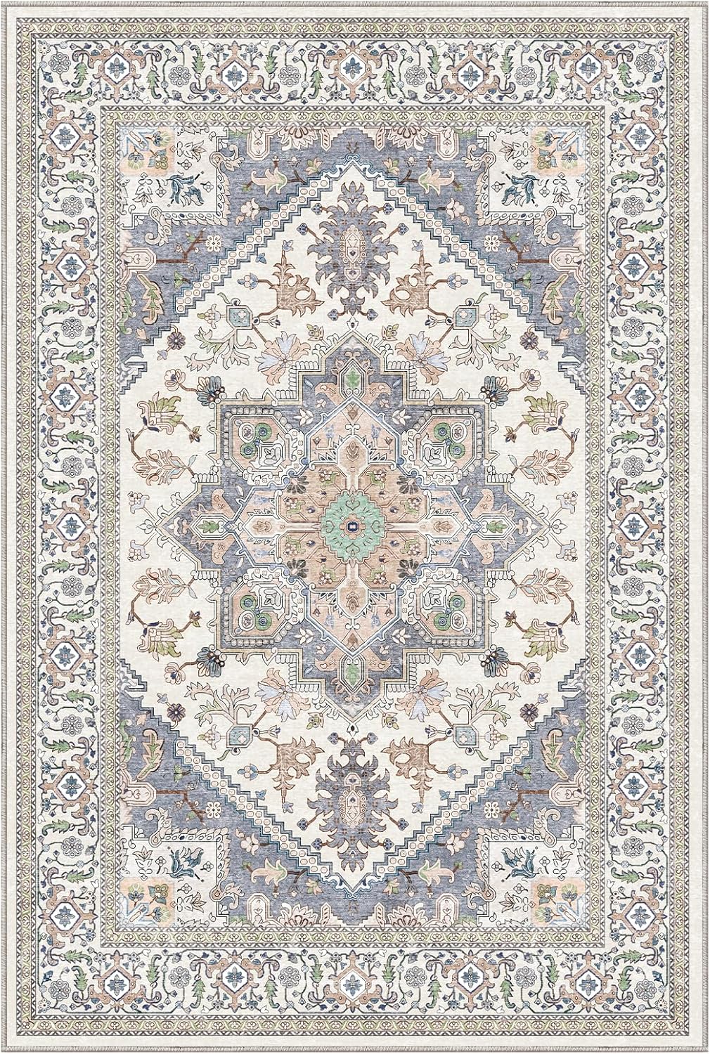 OPPODREAM Soft Area Rugs 9x12 Washable Rug with Non Slip Backing, Faux Cashmere Low-Pile Carpet, Purple & Green & Cream