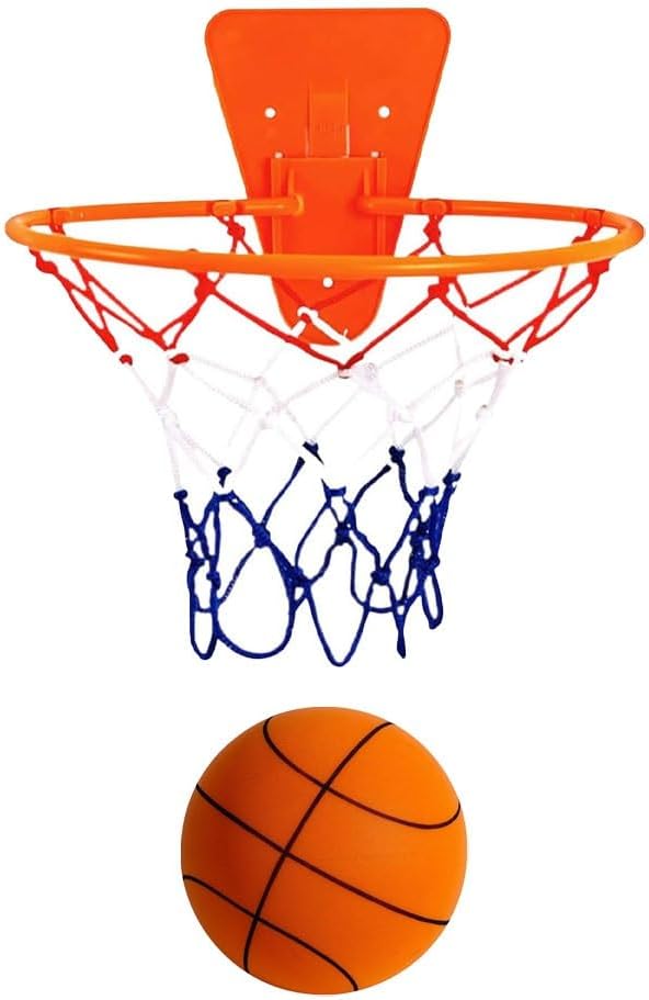 Orange Silent Basketball and Hoop Set, Indoor Basketball Hoop for Kids and Toddlers, Quiet Basketball Dribbling No Noise, Mini Foam Basketball for Door or Wall Mounted, Indoor Dribble and Shoot(Wired Orange)