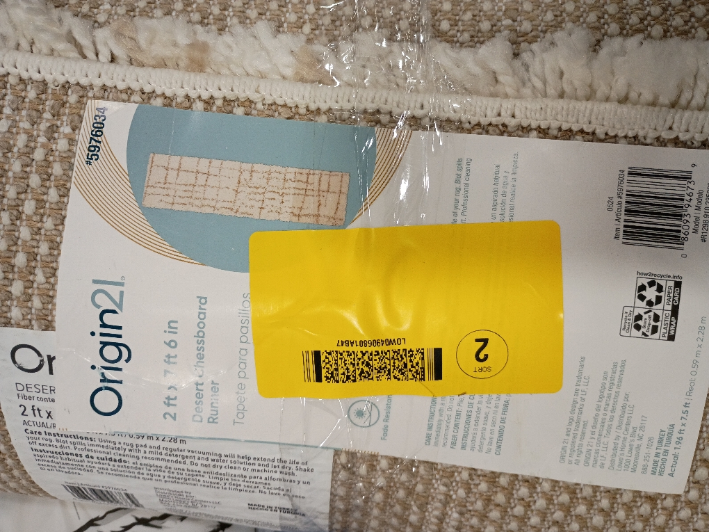 Clearcoat backing ensures a fixed shape and a strong foundation, providing long-lasting durability. Collection Name: Desert Chessboard. Color/Finish Family: Beige. Manufacturer Color/Finish: Beige. Type: Runner rug. Actual Diameter (Feet): 0. Actual Length (Feet): 7.5. Actual Width (Feet): 1.95. Common Measurement (W x L): 2 x 7. Pile Height (Inches): 1.77. Popular Sizes: Other. Weight (lbs.): 15.35. Backing: Latex. Care Instructions: Spot clean with mild detergent. Commercial/Residential: Commercial/Residential. Construction: Machine-made. Fade Resistant: No. Flame Retardant: No. For Use in Bedrooms: Yes. For Use in Dining Rooms: Yes. For Use in Entryways: Yes. For Use in Kid's Rooms: Yes. For Use in Kitchens: No. For Use in Living Rooms: Yes. For Use in Nurseries: Yes. For Use on Patios: No. For Use on Stairwells: No. For Use With Fireplaces: No. Fringed: No. Heat Resistant: No. Lowe's Exclusive: Yes. Made from Recycled Material: Yes. Material: Polypropylene. Non-Slip Grip: Yes. OEKO-TEX Certified: No. Package Quantity: 2. Reversible: No. Shape: Rectangular. Stain Resistant: Yes. Style: Modern/Contemporary. Technique: Woven. Textile Information: Imported. Use Location: Indoor. UV Protection: No. Washable: Yes. Waterproof: No. CA Residents: Prop 65 Warning(s): No. UNSPSC: 52101500