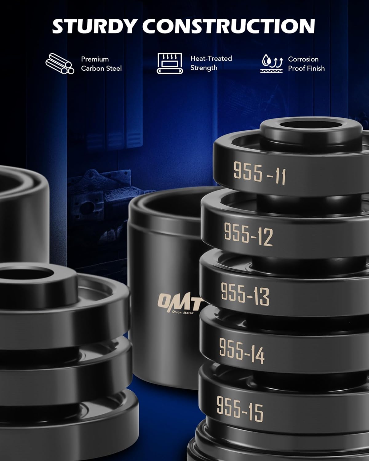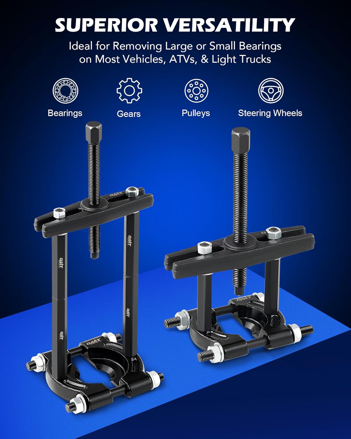 Efficient Bearing Solution: This versatile wheel bearing tool kit from Orion Motor Tech is ideal for removing large or small bearings on front and rear wheel hub axle shafts, as well as gears, pulleys, and steering wheels All-in-One Tool Kit: This tool set includes 24 bearing installation tools (a nut, 2 sliding screws, 4 sleeves, 2 sleeve plates, 13 bushings, and 2 washers) and 14 bearing separator tools (a yoke, a forcing screw, 2" & 3" jaws, 8 extension screws, and 2 puller legs) for a wide range of pulling jobs Wide Compatibility: Our bearing puller set offers multiple sleeves and bushings in most common sizes to work with most front wheel drive vehicles, ATVs, and light trucks Built to Last: Constructed from heat-treated 1045 structural steel with black oxide finish, this wheel bearing press kit ensures superior corrosion resistance and lasting durability under even punishing use Compact & Portable: This 38-piece professional wheel bearing removal tool set comes with a blow-molded storage case, keeping everything organized and easy to carry from home garage to workshop
