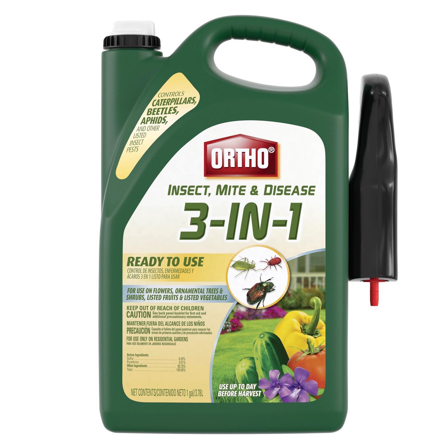 Use Ortho insect, mite and disease 3-in-1 ready to use to control fungal diseases and pests. This convenient, easy to use formula requires no mixing. Simply apply directly from the bottle as indicated in the instruction booklet and spray your plants to control insect damage, fungal disease and mites.