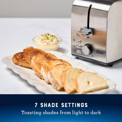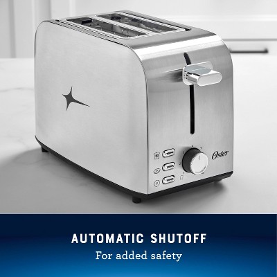 Oster 2-Slice Toaster Stainless Steel With Extra-Wide Slots: Reheat & Bagel Functions, 800W, Spot Clean