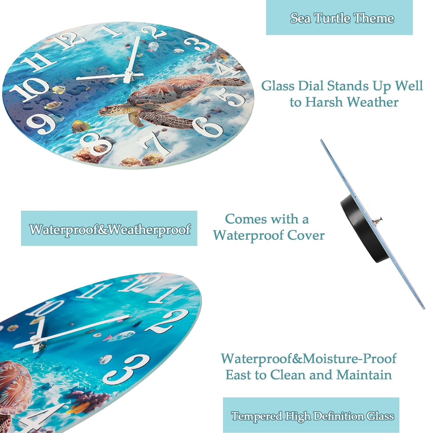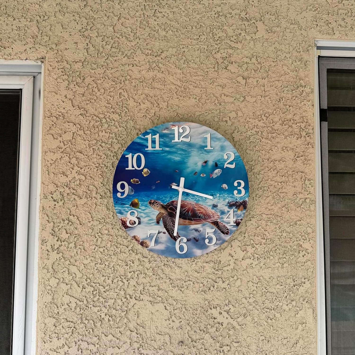【Undersea Theme】Decorative outdoor clock comes with a Coastal Undersea Turtle clock face on a Blue background. Especially suitable for decorating outdoor gardens, pools, porches and indoor houses, giving a fresh and unique atmosphere.