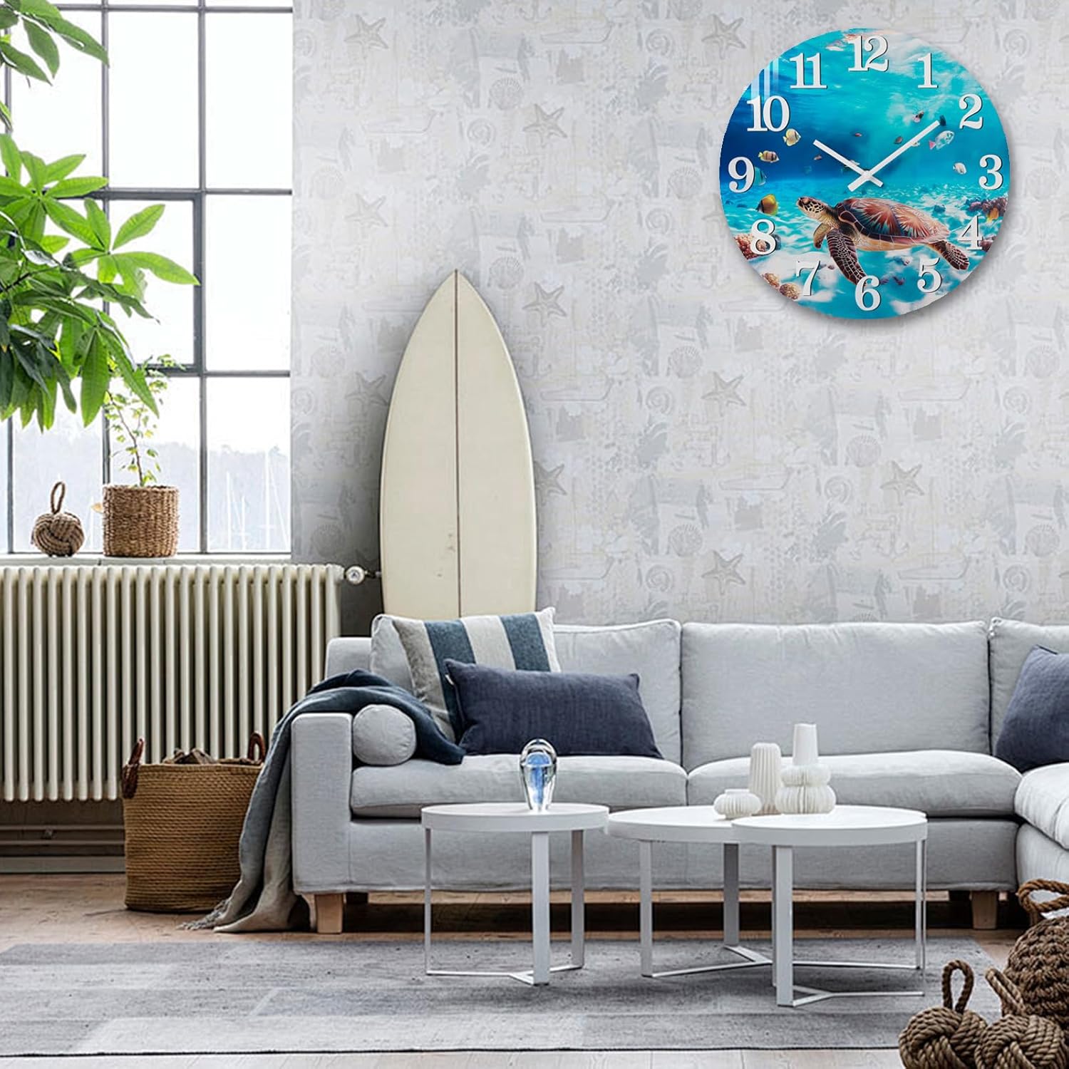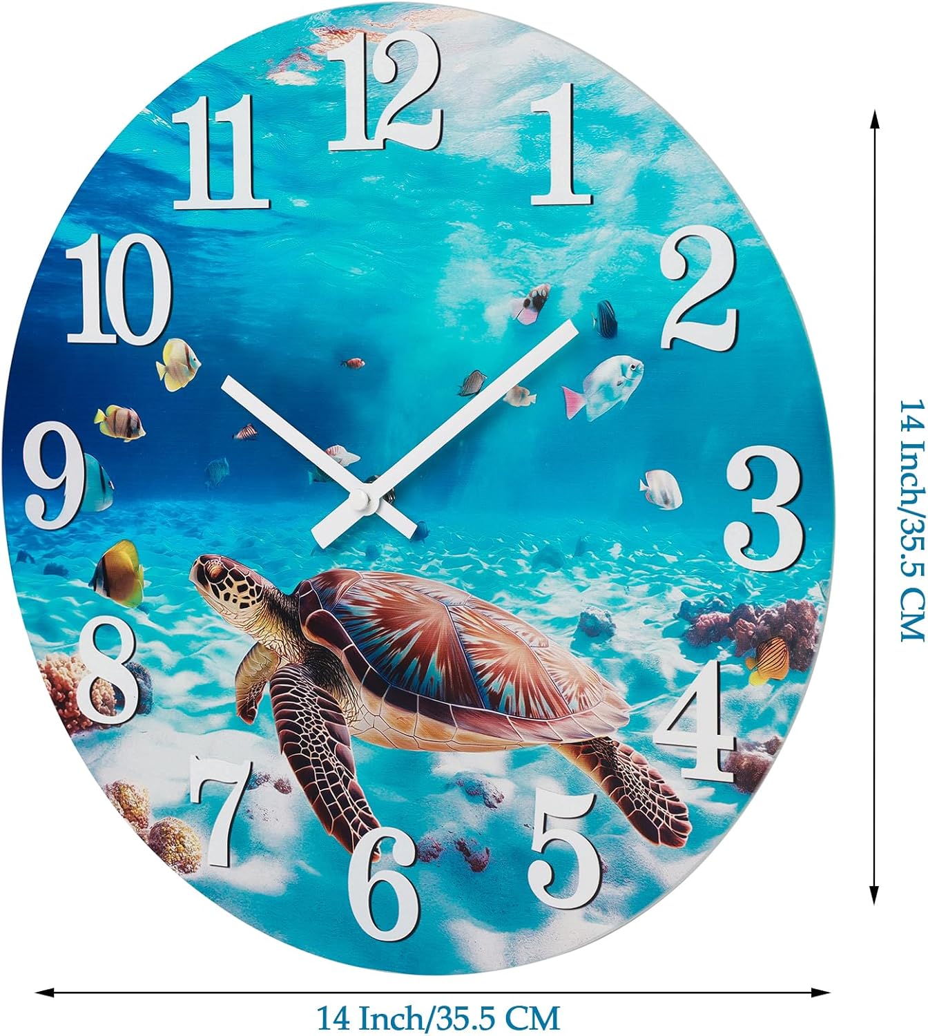 Outdoor Clocks Waterproof Outdoor Coastal Beach Ocean Wall Clocks for Patio Pool Garden Home Decor(14 Inch,Blue,Sea Turtle)