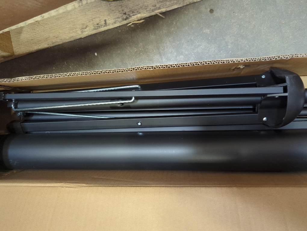 Portable Projector Screen. The aluminum arms keeps the weight of the entire screen down, the buckle in the middle of the support rod easily to adjust the height of screen while shorter the storage size of the tripod stand after its wider legs retracted, all parts are designed in a size that can be suitable for carrying with a carrier bag that just fits well.