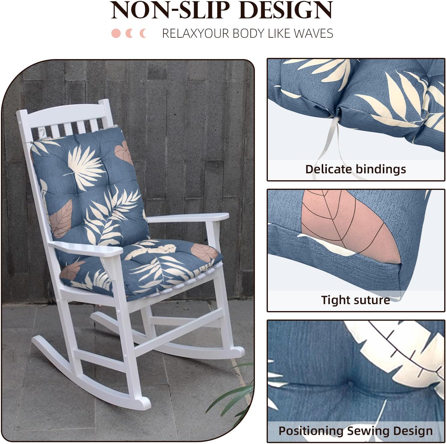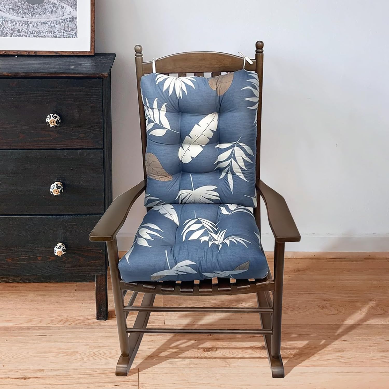 Outdoor Seat Cushions 2 Pcs, Upper and Lower Patio Chair Cushion, Flower Non-Slip Rocking Chair Cushions with Ties
