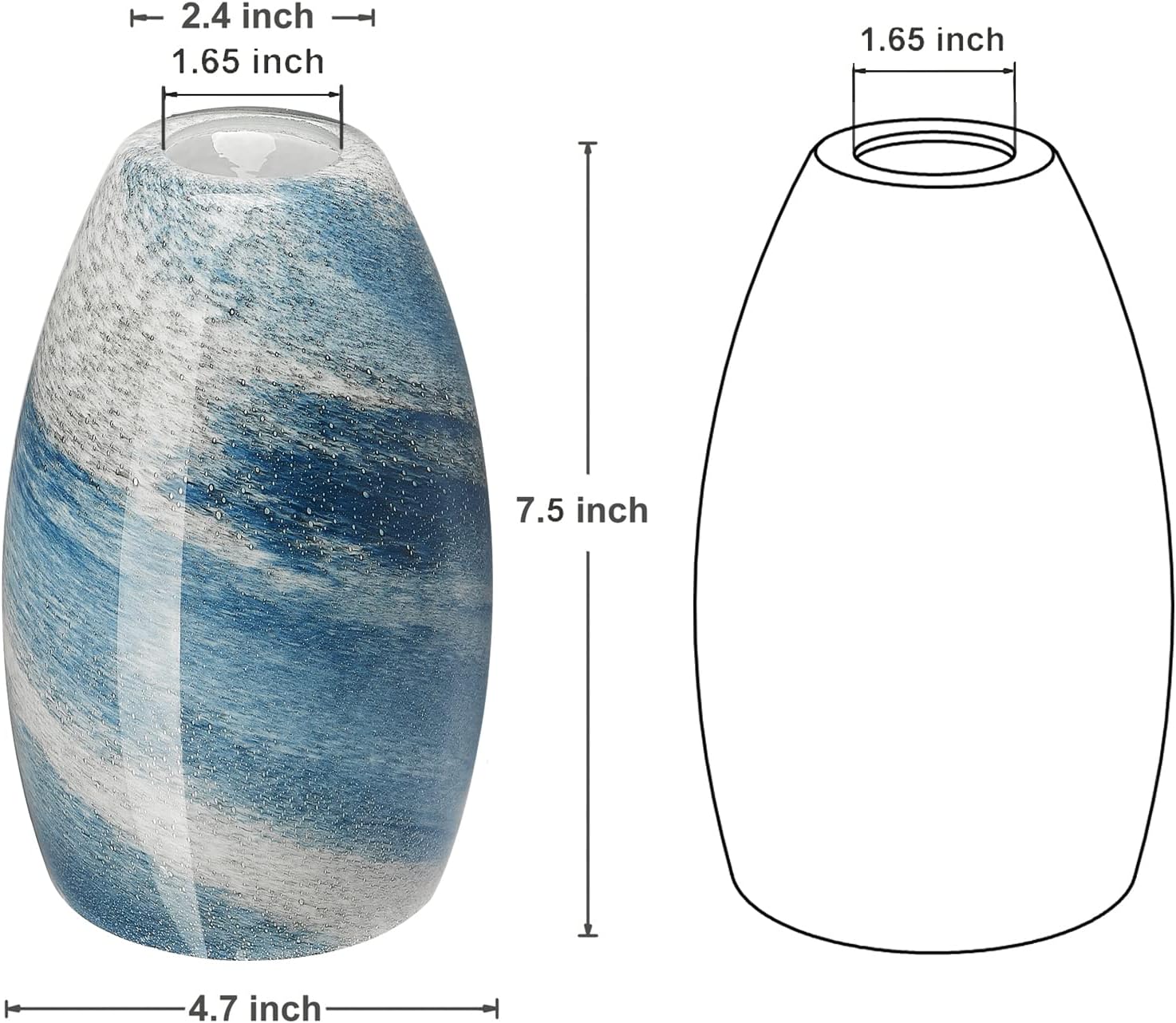 ·Shade Size: The glass lamp shade dimensions: Height: 7.5IN/19CM; Fitter opening: 1.7IN/4.2CM; Top outer diameter of the lamp shade: 2.4IN/6.1CM; Max diameter of the lamp shade: 4.7IN / 12CM. NOTE: Please check the dimension of the shade to make sure the shade is suitable for your light fixtures before you purchasing.