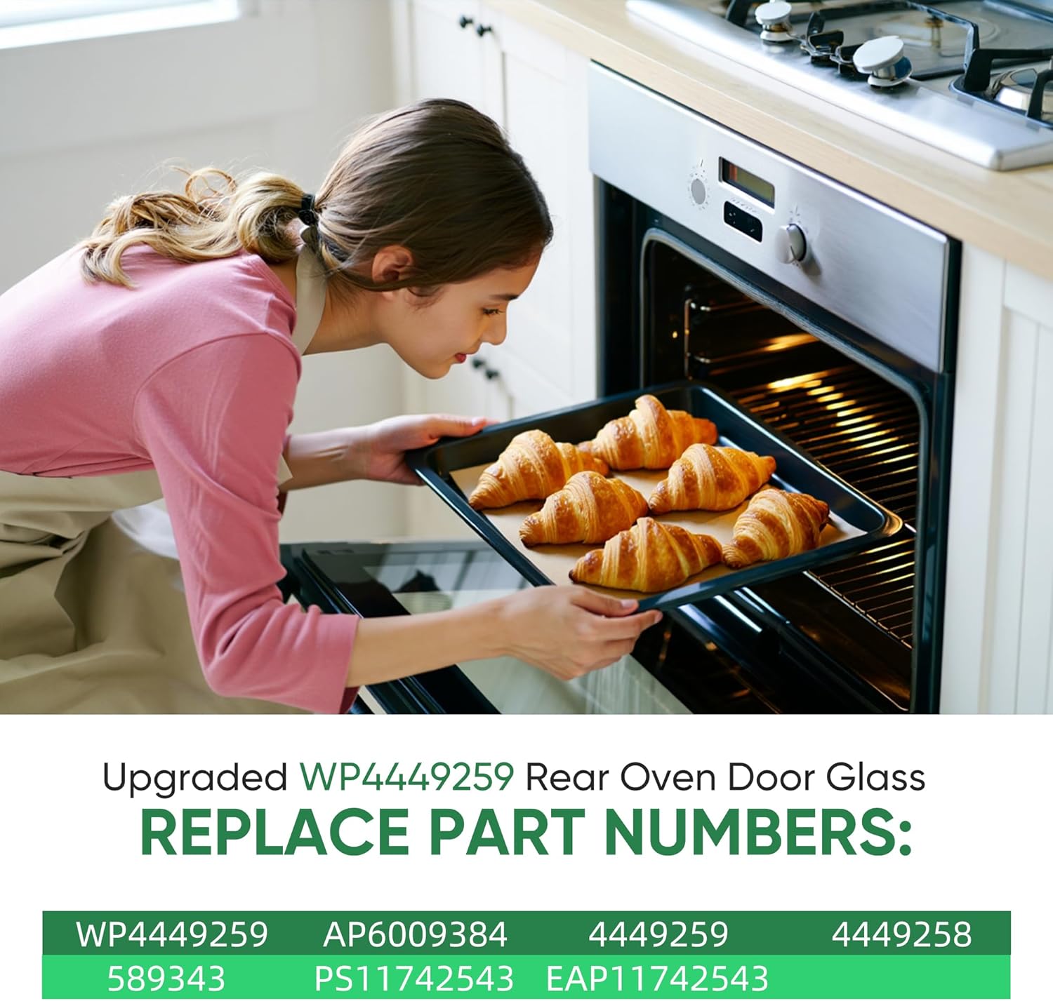 Oven Inner Door Glass Comptabile with Whirlpool 4449259 Range Oven Door Glass Oven Door Glass KDRP463LSS08, KEBC107KSS03 Replace Part Number WP4449259 AP6009384 PS11742543 EAP11742543