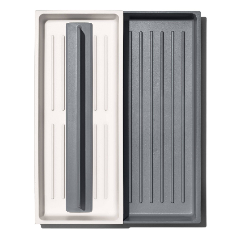 OXO Long Handled Tool Organizer: Utensil & Kitchen Drawer Storage, White/Gray, Hand Wash, TPE & Polypropylene Material