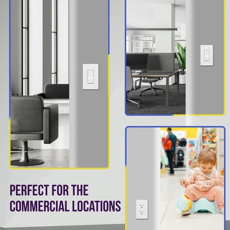 Pack of 10 Color White ENERLITES screwless decorator wall plate is made of polycarbonate thermoplastic material to provide durability, flexibility, and resilience to withstand hard impacts and heavy force Heat & fade resistant to temperatures over 100 degrees which protects them against discoloration and fading over time. Flammability UL94, V2 rating Easy replacement of any wall plate of the same size. Outer dimensions are: Height: 4.68" x Length: 2.93” inches. Inner dimensions are: Height: 2.65” x Length: 1.36” inches. Smooth finish without recessed lines and soft edges allow for easy cleaning, White, UL Listed