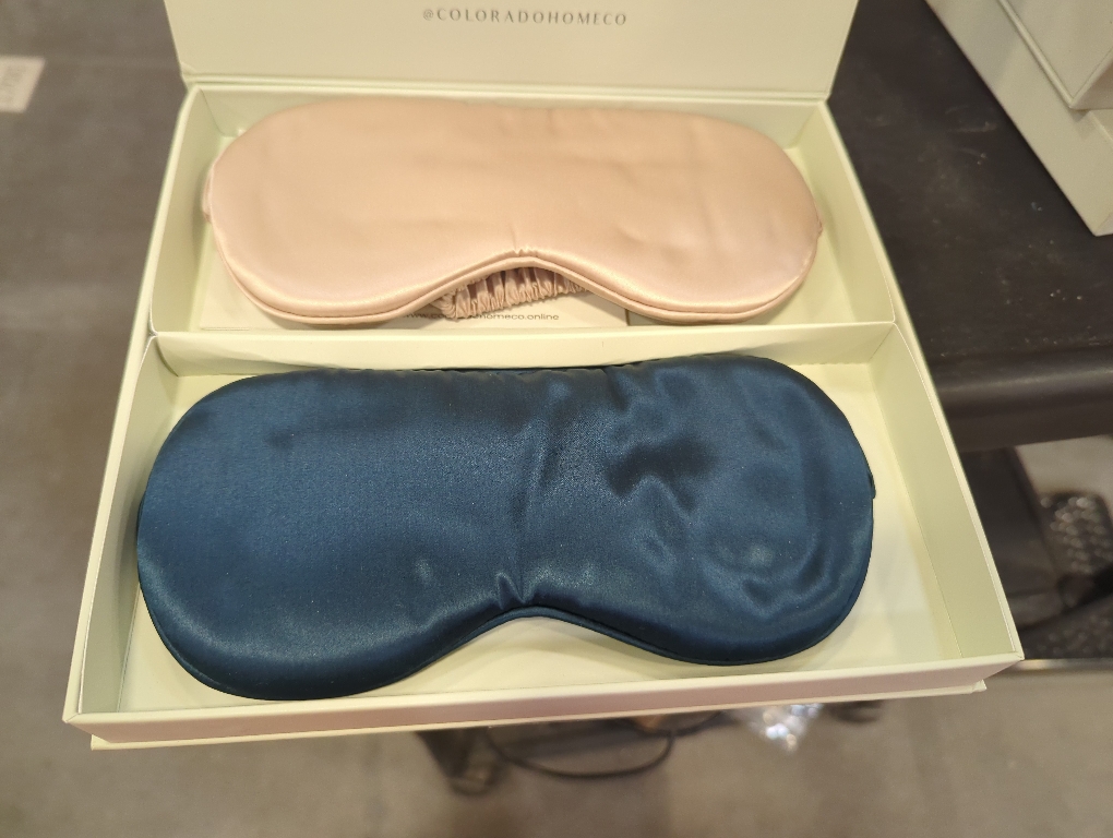 New Open box for inspection Pack of 2 Color beige and blue Get a Restful Sleep - block out light & regulate rotine. Wake up feeling refreshed with this silk eye sleeping mask set for women and men.