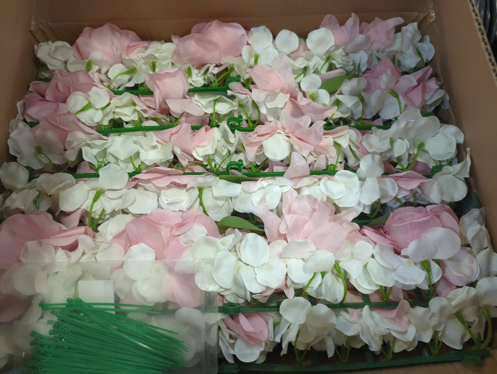 The faux wedding arch flowers consists of pink roses, hydrangeas, orchids and eucalyptus leaves. Comes with a package of ties for easy tying of the wedding arch.