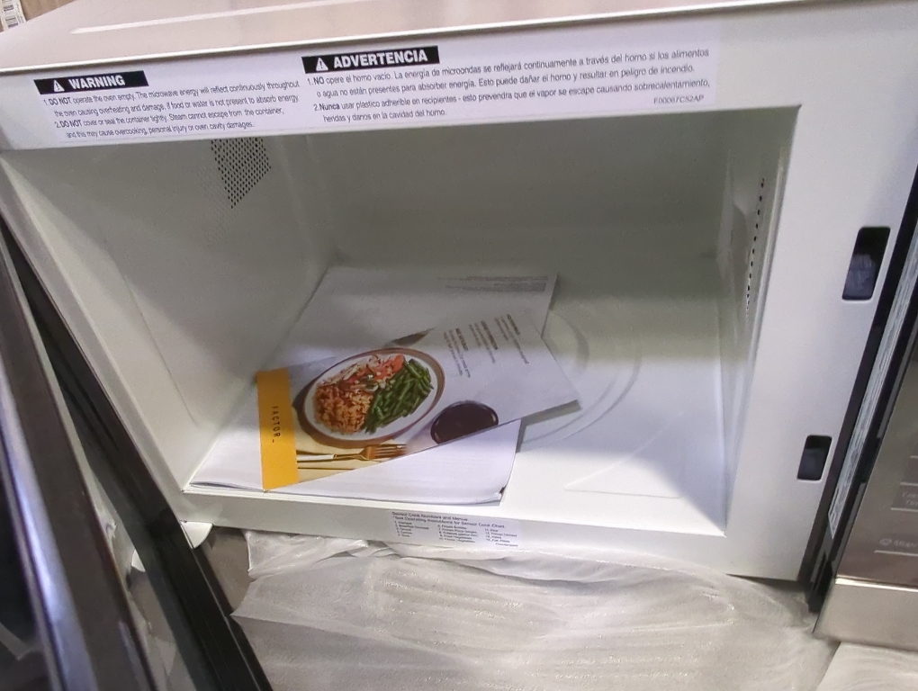 Panasonic Microwave: This 1200 Watt high power, 1.2 cubic foot capacity stainless steel countertop/built in microwave delivers a seamless stream of cooking power for even cooking and delicious flavor.Turntable Diameter 340mm. Clock : 12H. Child Lock : Yes..Operating Frequency : 2,450 MHz Inverter Technology with Turbo Defrost: Patented Inverter Technology generates a seamless stream of power and delivers consistent, evenly prepared food without overcooking; Advanced Inverter Turbo Defrost speeds up defrosting time Compact Design: This countertop microwave with 13.4 inch turntable is thinner, lighter and more efficient, allowing you to devote less space to electronics and more to interior capacity; Internal dimensions (H x W x D): 9 15/16 inch x 13 15/16 inch x 14 3/8 inch Smart Cooking Settings with Genius Sensor: Built in automatic genius sensor adjusts power and times based on different foods; Other advantages include 14 preset menu items, quick minute timer, delay start and child safety lock Keep Warm Feature: This inverter microwave keeps soups, gravies or desserts warm and fresh until ready to serve. Power Source 120V / 60Hertz. Power Consumption 1480W. Membrane keypad and 5 menu buttons for easy programming, 10 Power Levels; push-button door release
