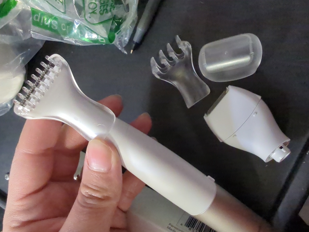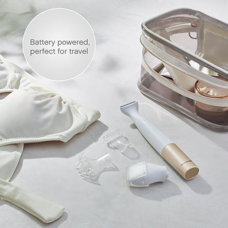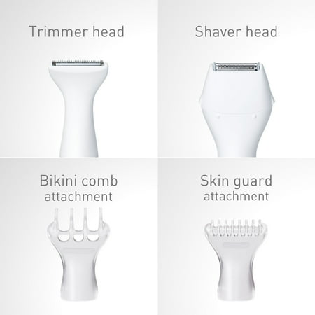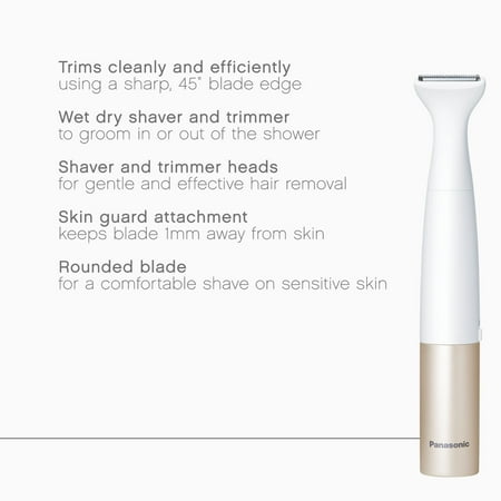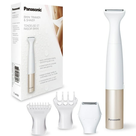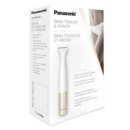 2-in-1 Bikini Trimmer and Bikini Shaver: Made just for the bikini area, the Panasonic ES-WWV6-N allows you to shave, trim or shape Gentle Blades for Safe Grooming: Trimmer blades uses rounded edge to be extra-gentle on skin, and trimmer blades shaver foils are made using hypoallergenic stainless steel, for a comfortable trim or shave even on sensitive skin Four Attachments: Dedicated shaver and trimmer heads let you keep yourself well-groomed however you want; bikini comb trims thicker hair; skin guard attachment keeps trimmer blade 1mm from skin, ensuring safety while grooming Wet or Dry Convenience: Waterproof women's bikini trimmer allows you to groom wet, in the shower or bath, or dry, anytime. Perfectly Portable: Small, cordless design packs neatly in makeup bag for travel; no need to worry about chargers, this bikini line trimmer operates on 1-AA battery (not included)