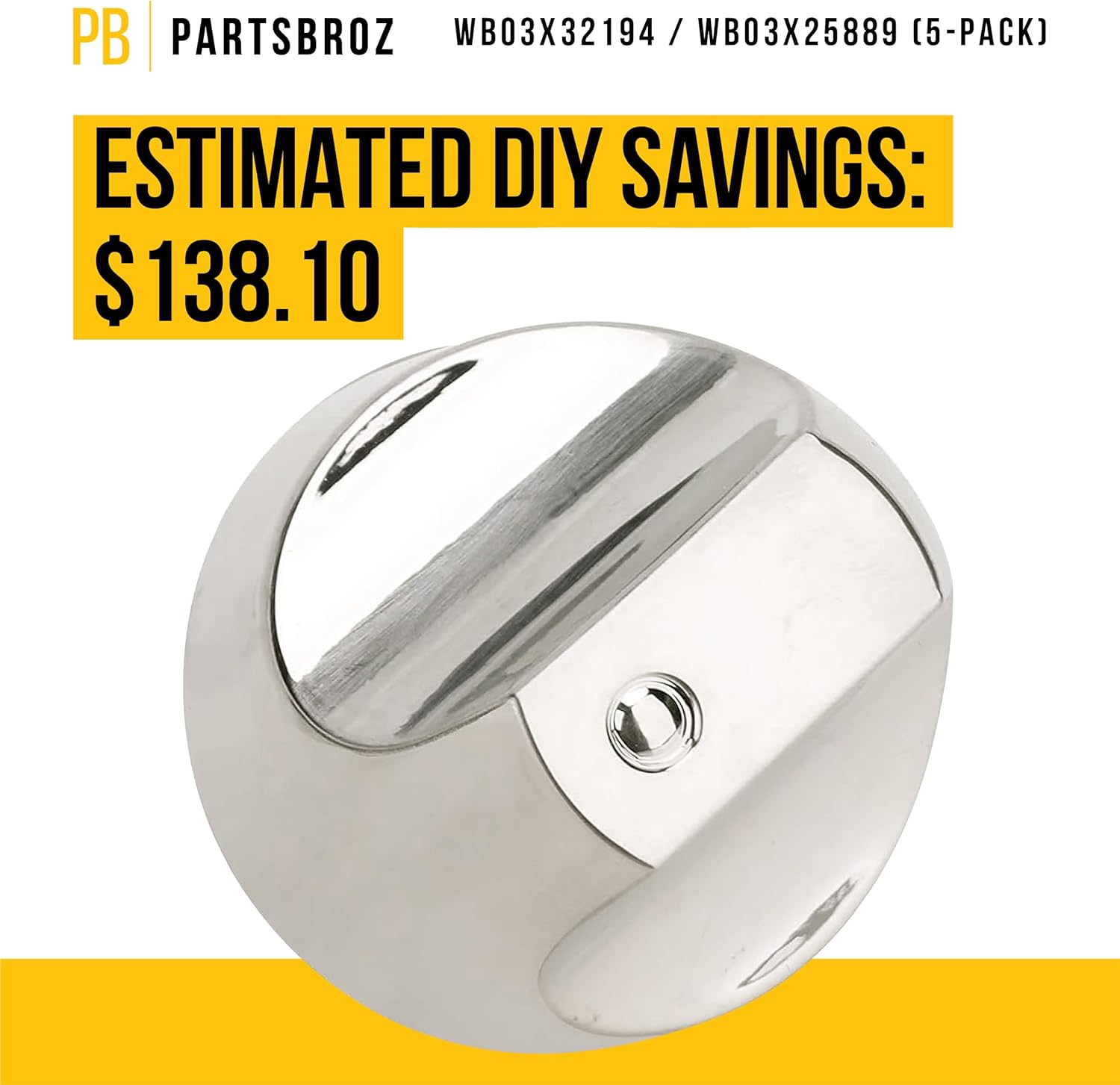 3. PartsBroz WB03X32194 WB03X25889 Stove Control Knob (5-Pack) - Compatible with General Electric GE Cooktop Range - Replaces AP6837585 WB03T10320 WB03T10329 WB03X25889 4920893 PS12709871 Ultra Durable