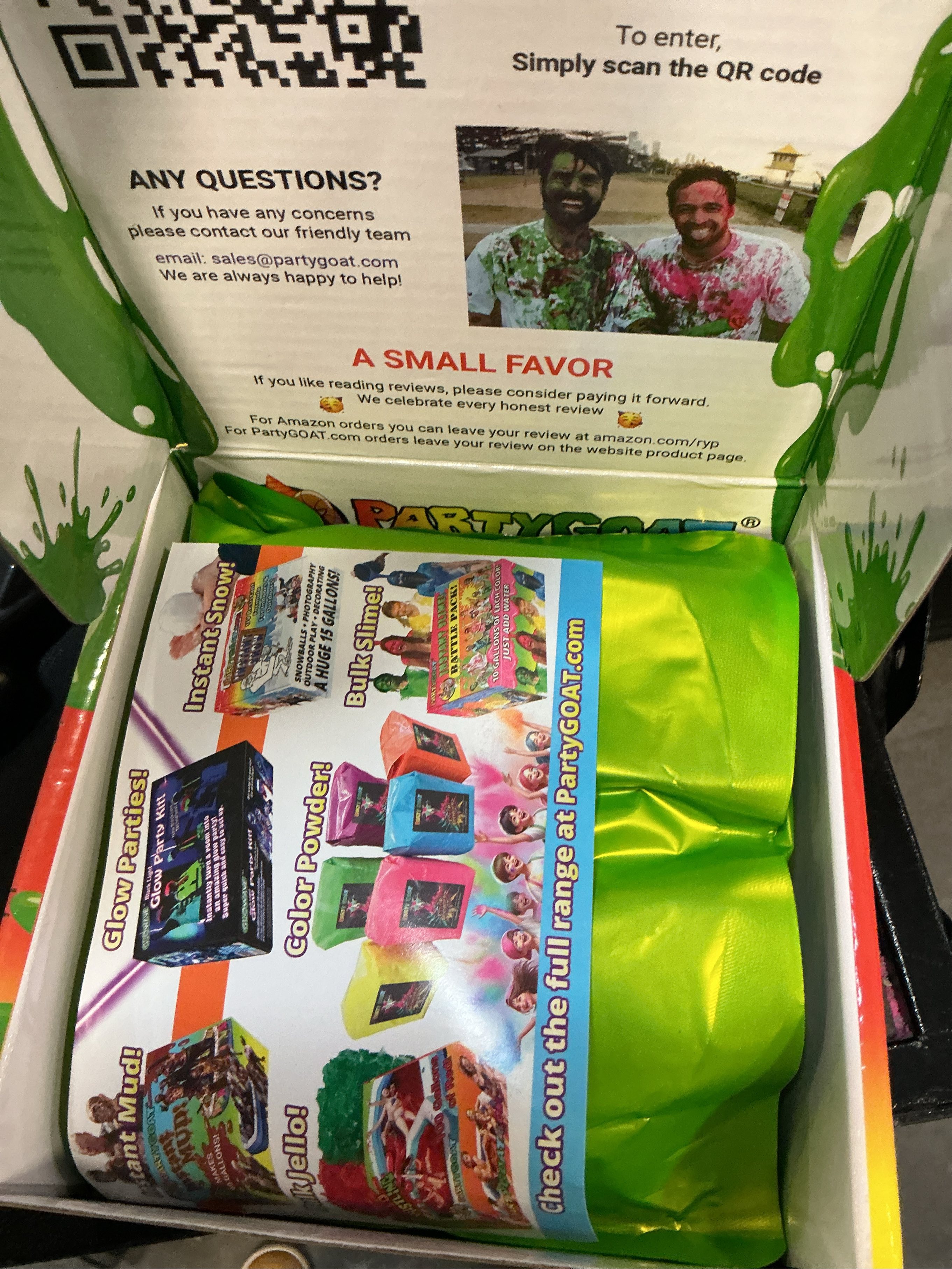???? NON-TOXIC, NON-STAINING, SAFE for kids, pets and aquatic life (designed to US toy safety standards). Environmentally friendly, non-sticky. EASY CLEAN UP. Party GOAT slime will easily wash off skin and hair and comes out of clothes in a normal washing cycle. EASY DISPOSAL - Instant slime is Eco-Friendly. Simply hose it into the grass or dilute it with extra water and wash it down a drain. 3 Color variants available (Pink, Blue or Green).