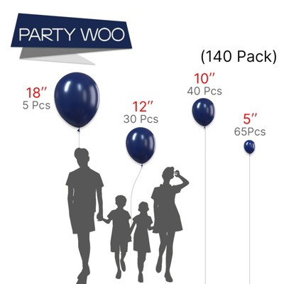 140 PCS PEARL NAVY BLUE BALLOONS DIFFERENT SIZES: Package includes 18 inch balloons (5 pcs), 12 inch balloons (30 pcs), 10 inch balloons (40 pcs), 5 inch balloons (65 pcs)