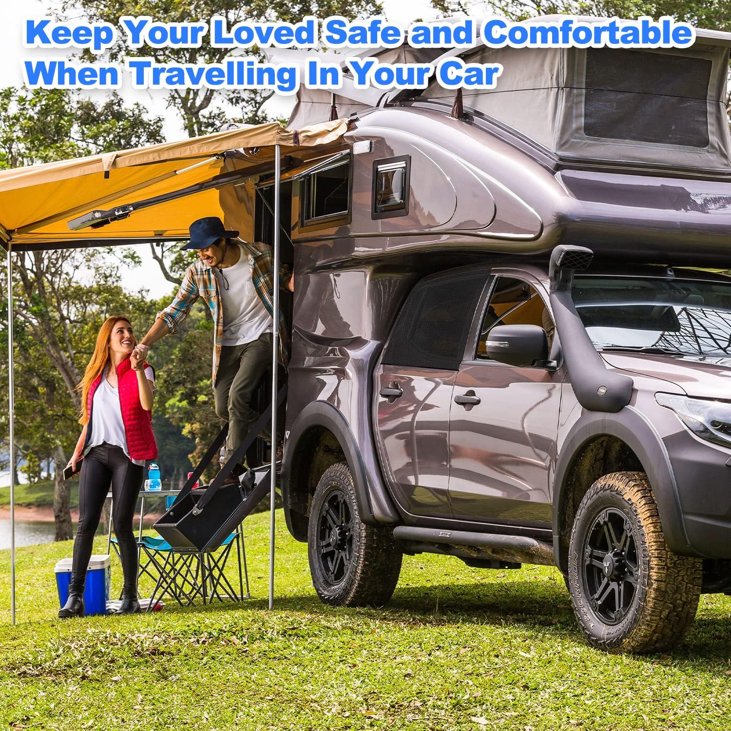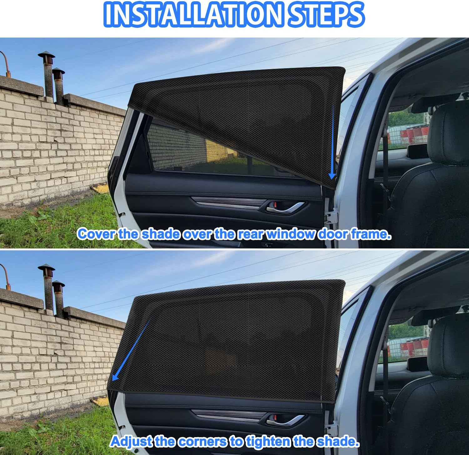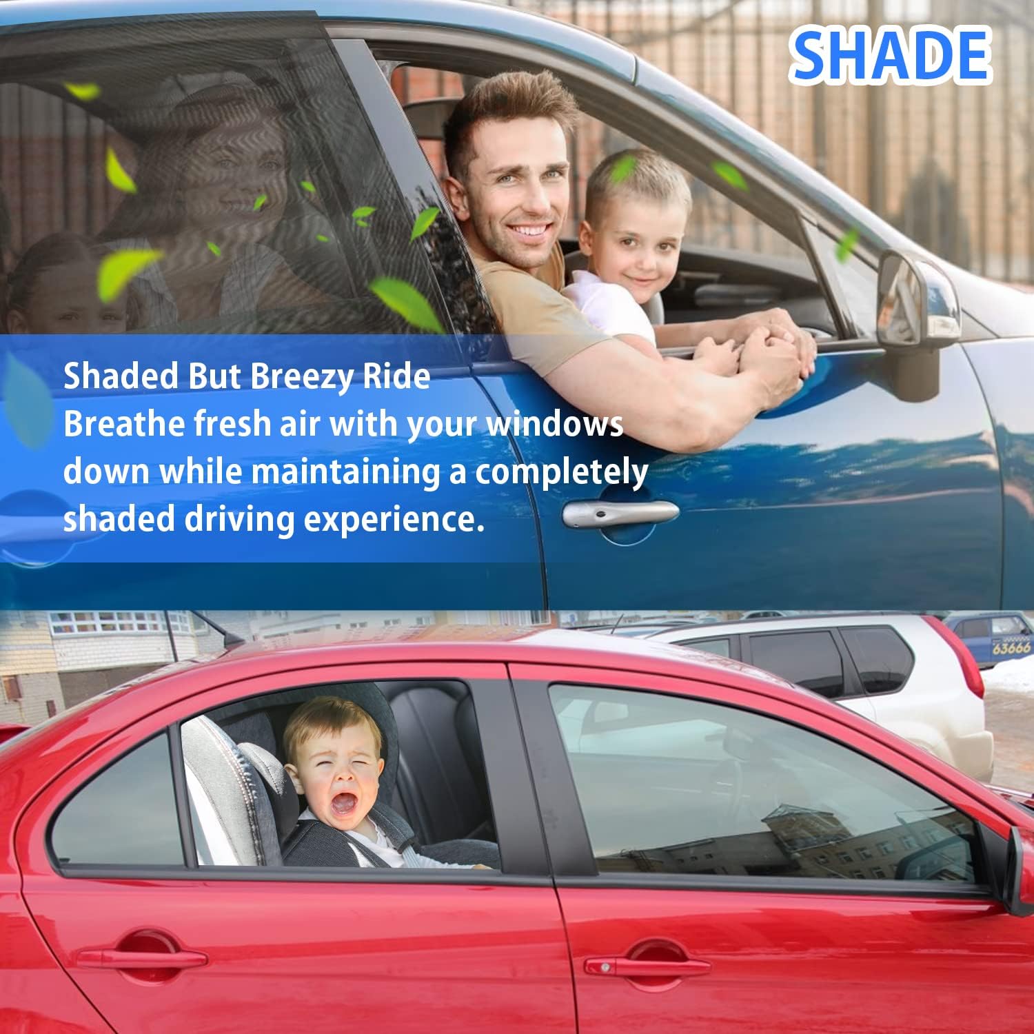 【Breatheable and Comfort】It's a total sun blocker with a double layer mesh, fully breathable and will stay on the outer area of the window frame. So you can still roll the windows up and down normally, enjoy the outside breeze and enjoy the view in comfort while shading. Having cooler and more comfortable cabin lounges, and decelerate your car interior trims aging.