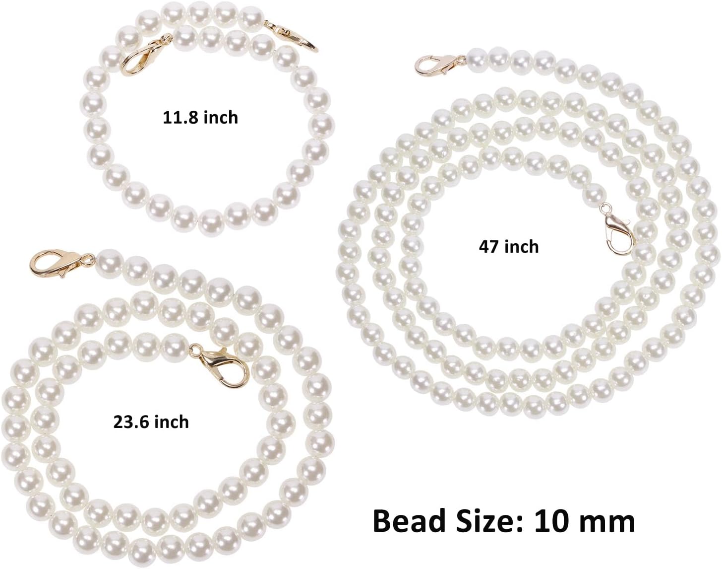 Package includes 3 pieces pearl purse chain strap replacement in 3 different length. (Color difference exists in pearls for different length. )