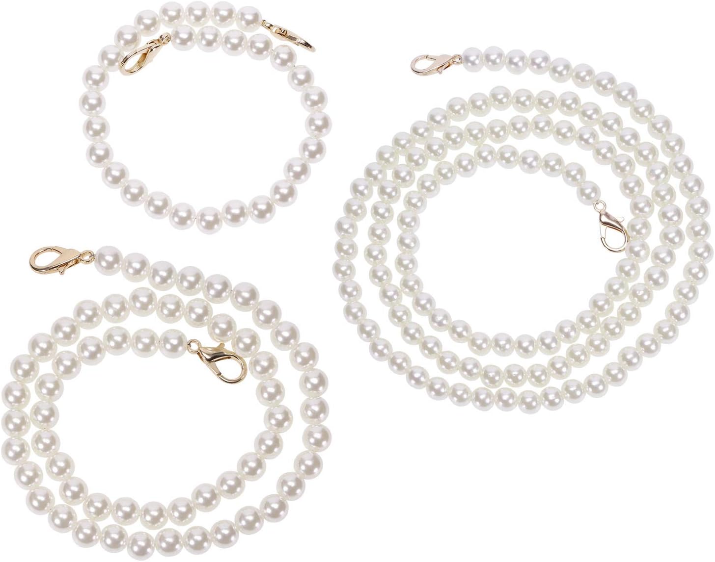 PENTA ANGEL Purse Chain Strap Replacement 3Pcs Imitation Pearl Beads Short Long Handle Shoulder Cross Body Bag Handbag Chains Accessories with Metal Buckles