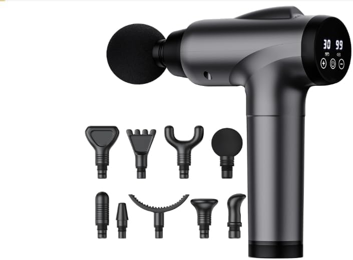 VERSATILE DESIGN: Features 9 interchangeable massage heads and 30 adjustable speed settings for customized muscle treatment and pain relief