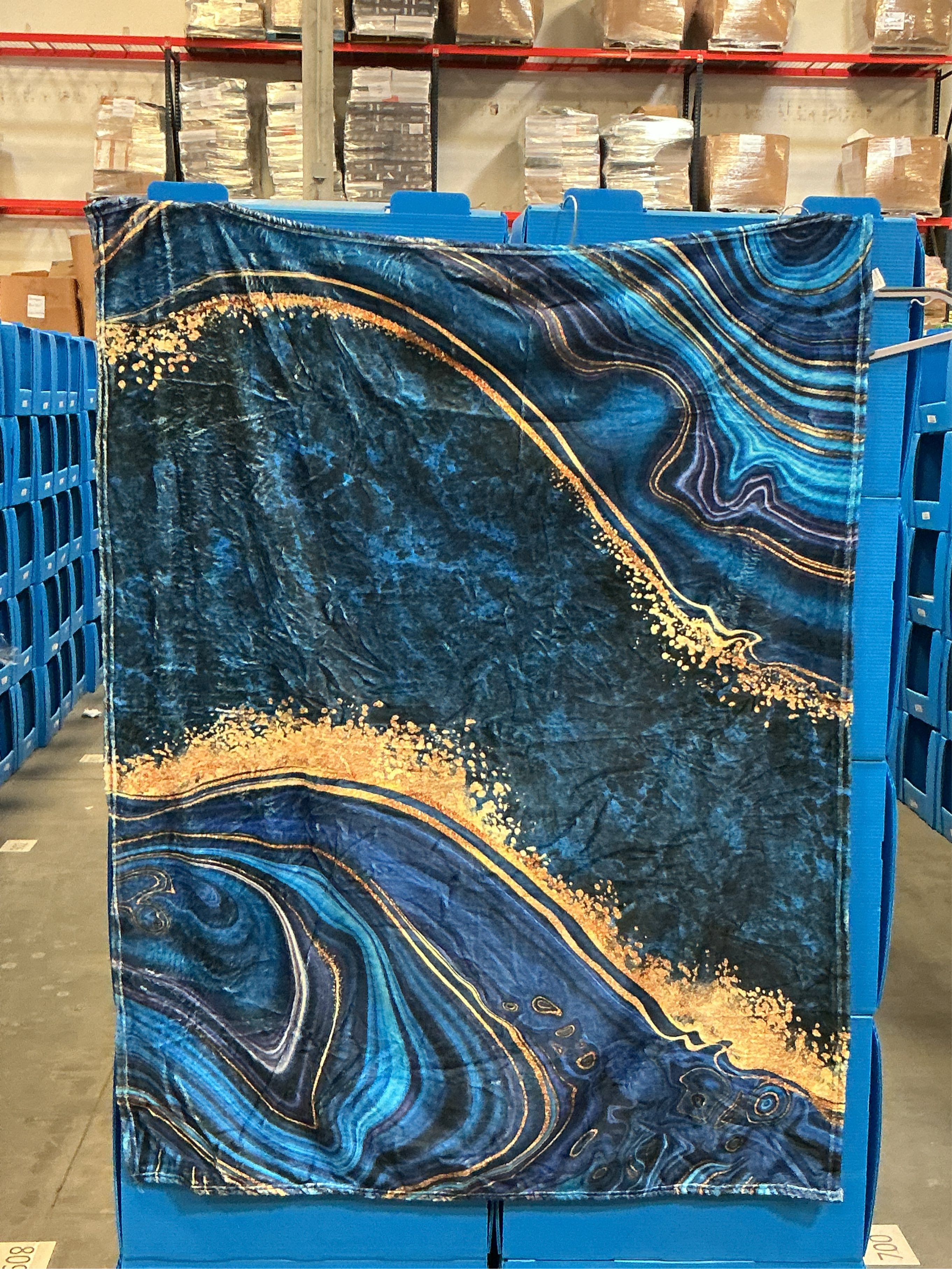 Perinsto Blue Painted Marble Throw Blanket Ultra Soft Warm All Season Marbling Painting Decorative Fleece Blankets for Bed Chair Car Sofa Couch Bedroom