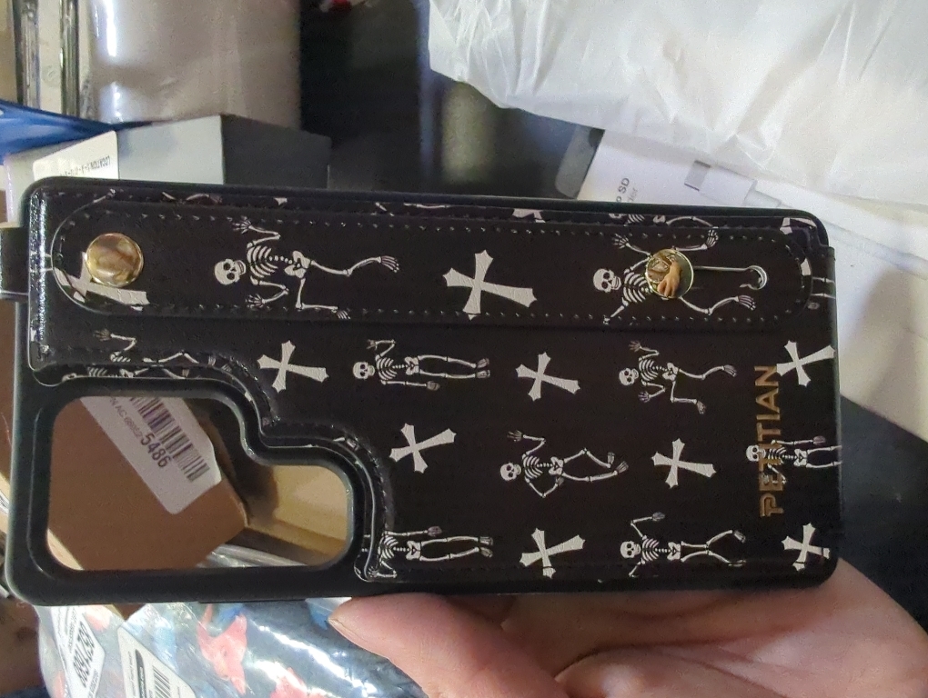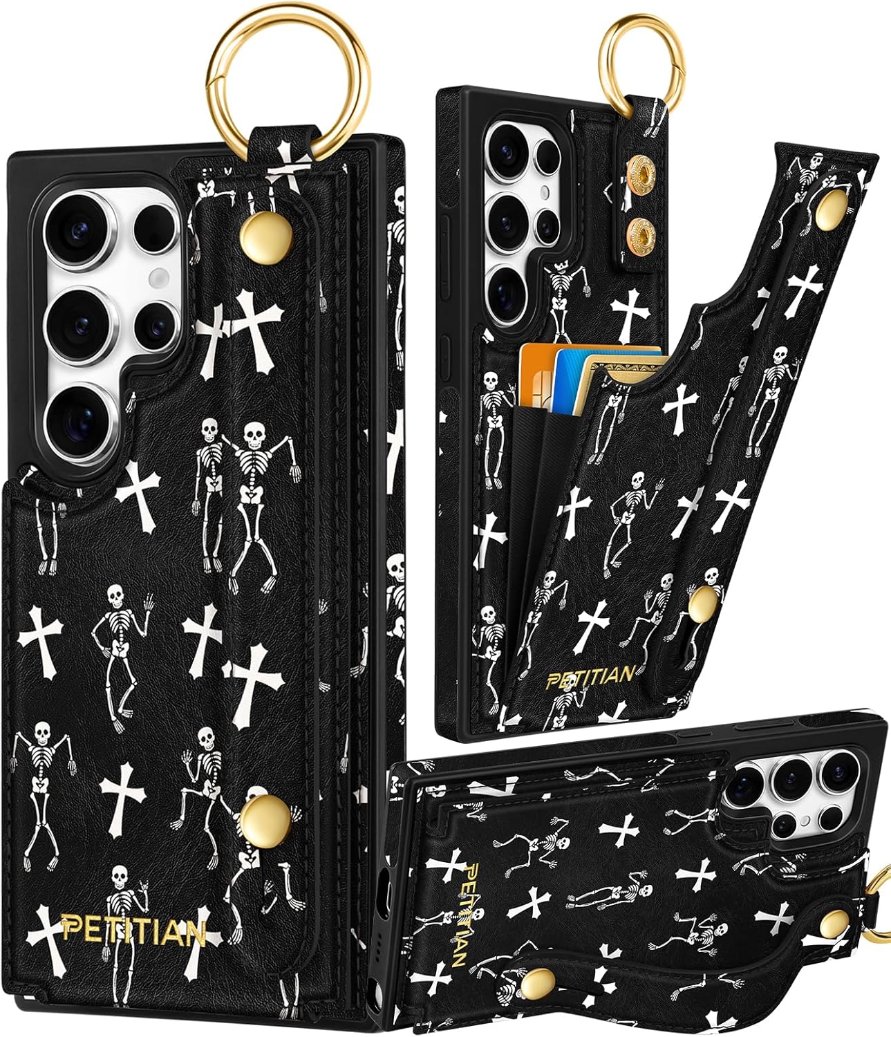 3. Petitian for Samsung Galaxy S25 Ultra Case with Wallet - Women Girls Cute Girly Aesthetic Unique Design Leather Credit Card Holder Cardholder Stand Wristband for S25 Ultra, Skull