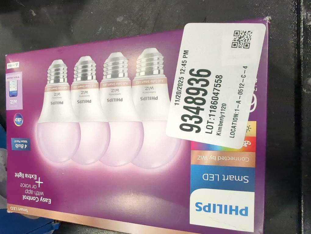 Philips 4pk Smart Wi-Fi 60W Multi-colored LED Light Bulbs A19: E26 Base, Voice Control, Dimmable, Compatible with Alexa, Google, Siri