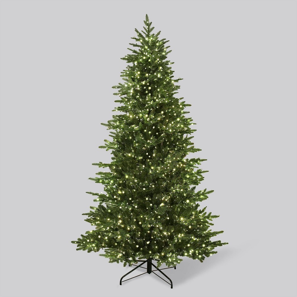 This 7.5-foot balsam fir tree boasts 2,000 bi-color LED lights for a vibrant glow. Enjoy 10 color and motion effects, all controlled by a remote.
