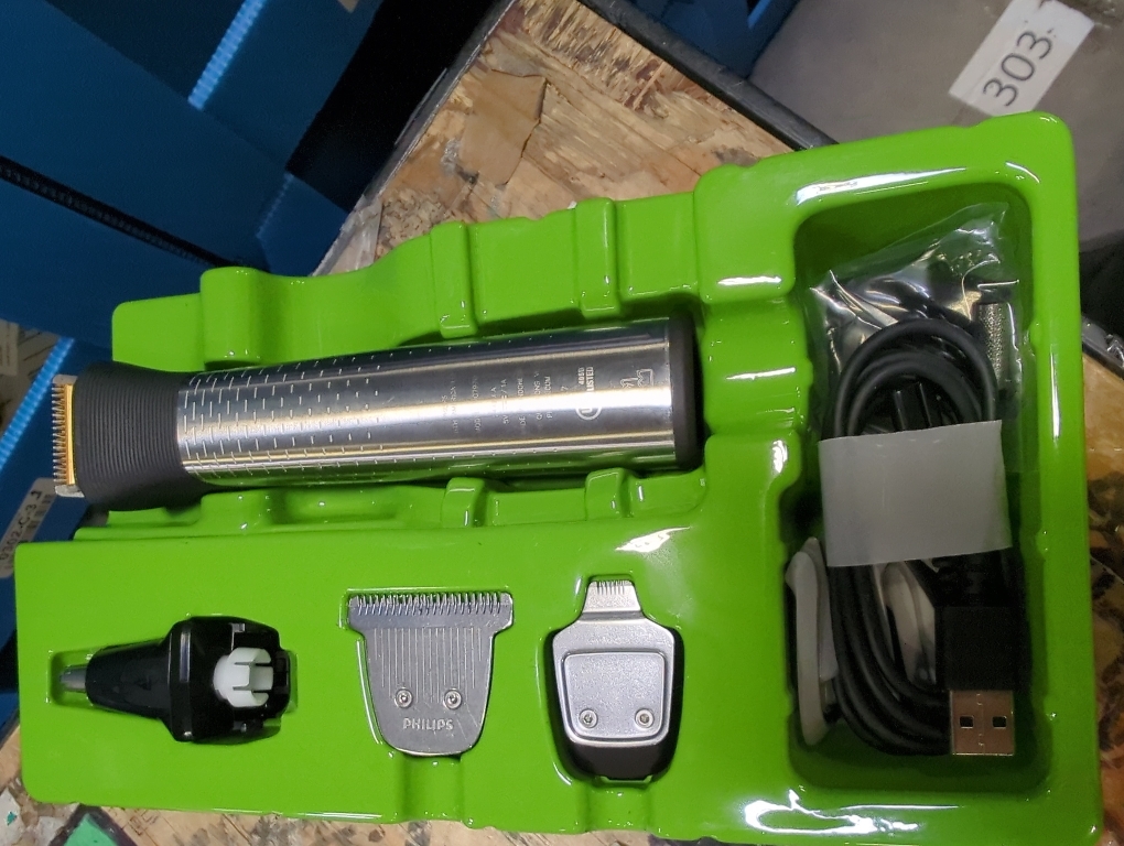 The set includes: 1x Multigroom handle and a set of attachments and combs for face, head and body trimming - see the what's in the box section; 1x USB-A charging cable (power adapter not included)