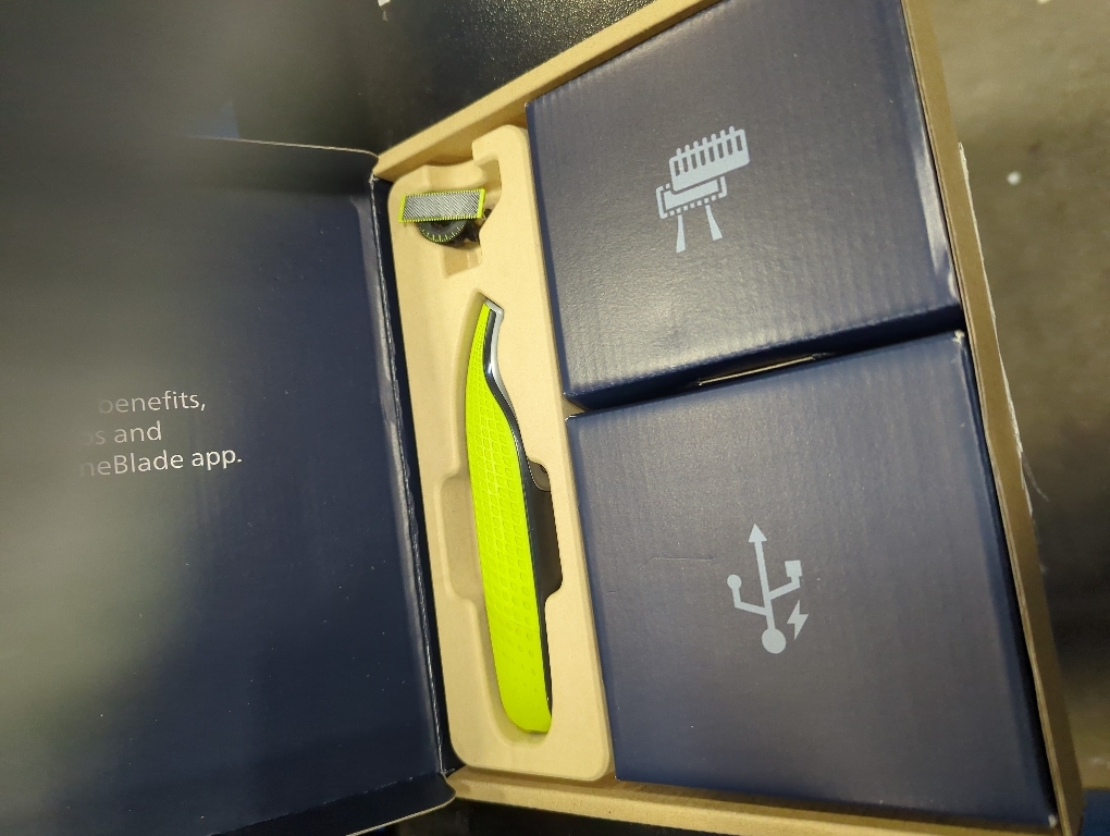 Includes: 1 handle, 1 blade for face, 1 blade for body, 4 stubble combs for face, 1 skin guard for body, 1 body comb, 1 power charger, 1 protective cap